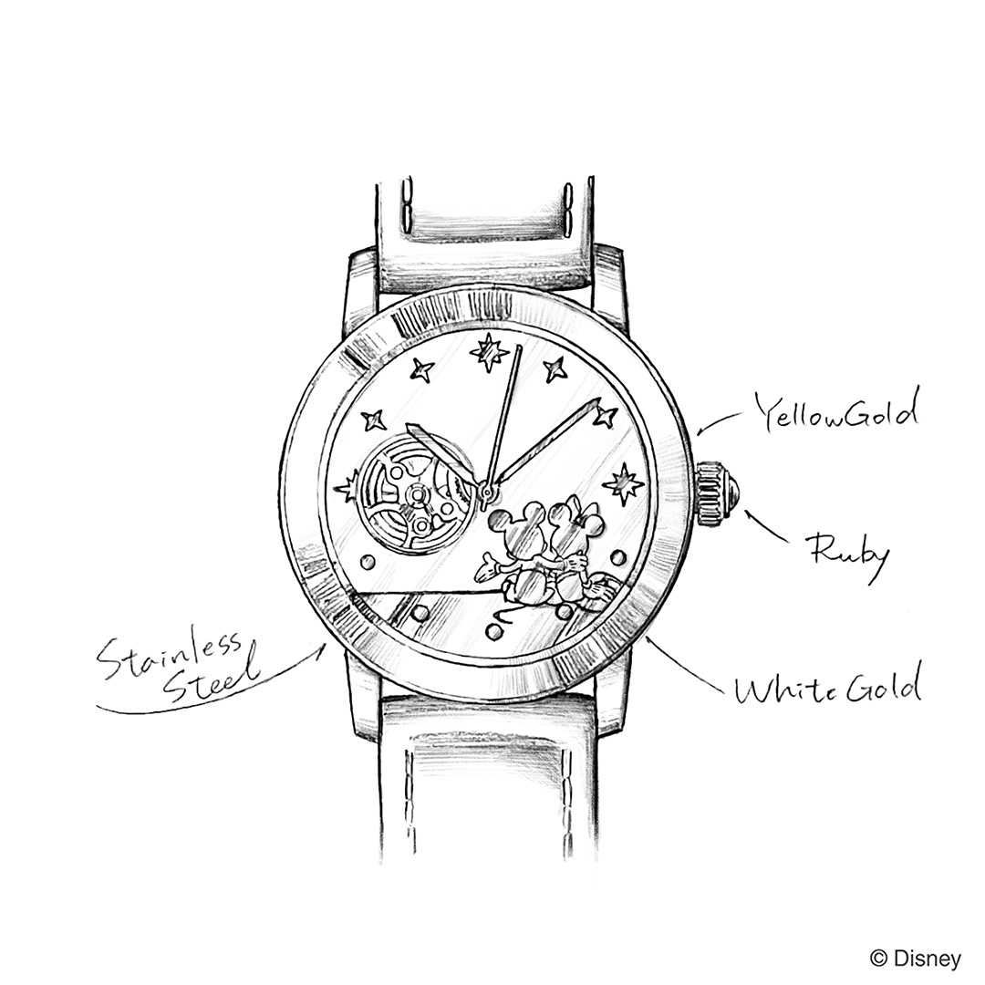 いつか娘に受け継ぐことも考え、家族みんなが好きな「ミッキー&ミニー」のデザインで機械式時計をオーダー。