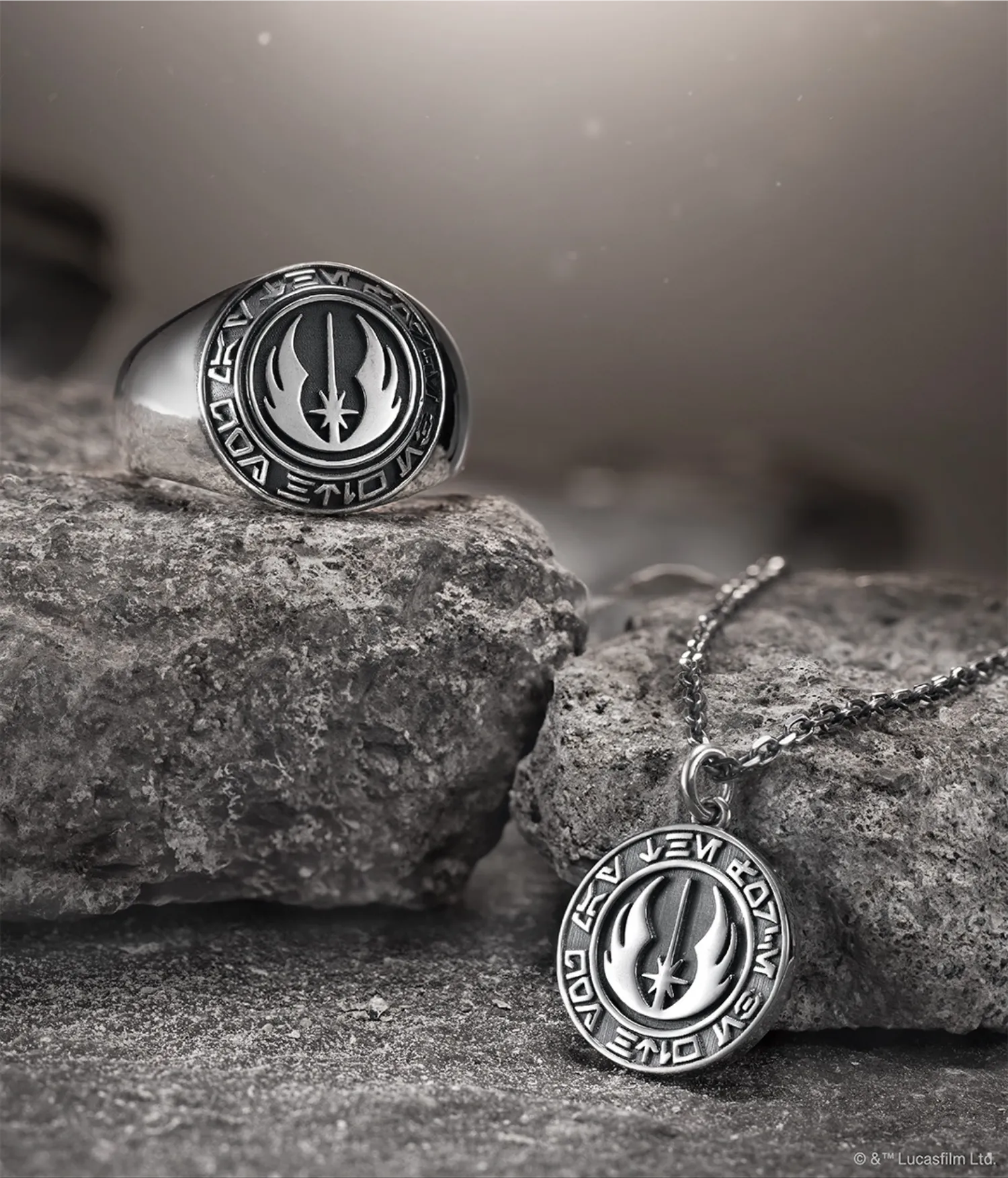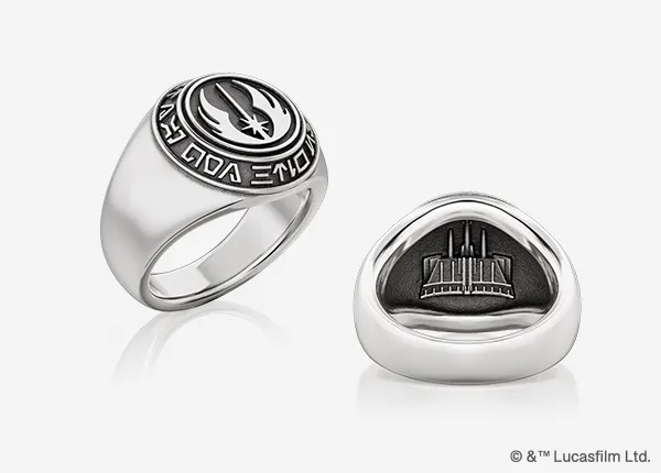 『スター・ウォーズ』シリーズにも、新たなシルバージュエリーが登場。 表側には「ジェダイ・オーダー」の格式高いエンブレムを、内側には荘厳な「ジェダイ聖堂」を立体的にデザインしました。