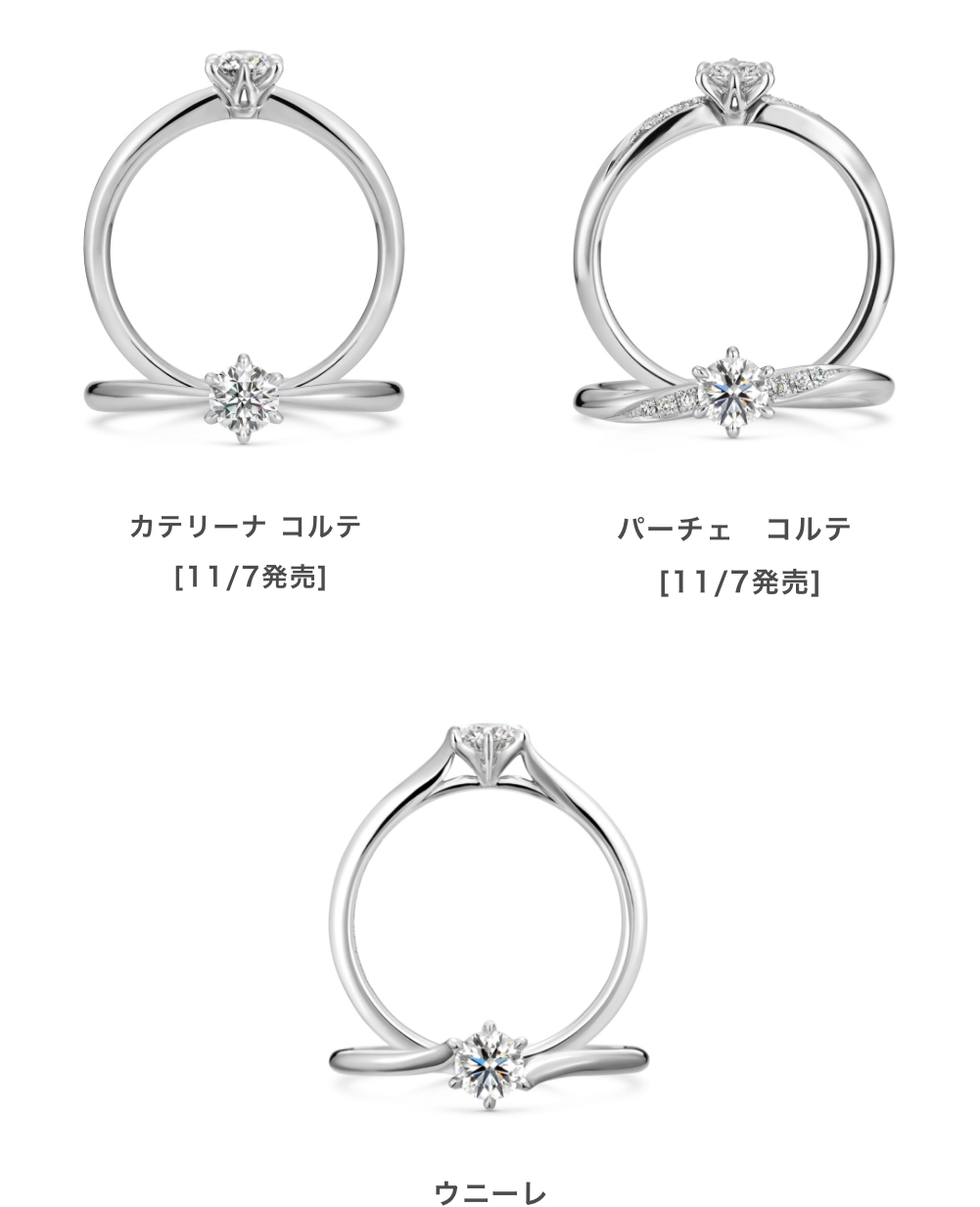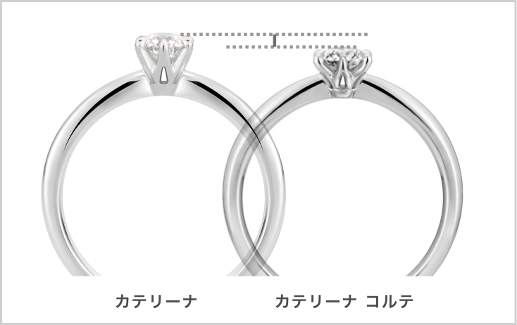 人気デザイン『カテリーナ』の魅力をそのままに、石座の高さを抑えて普段使いしやすさをアップしたデザインです。石座を低くしてもダイヤモンドの存在感が美しく引き立つよう、センターへ向かって絞るようなフォルムのアームがポイント。幅や厚みなど細部までこだわり、ソリテールリングのフォーマル感と、身に着けやすさを両立しています。