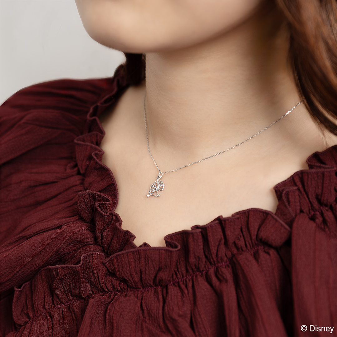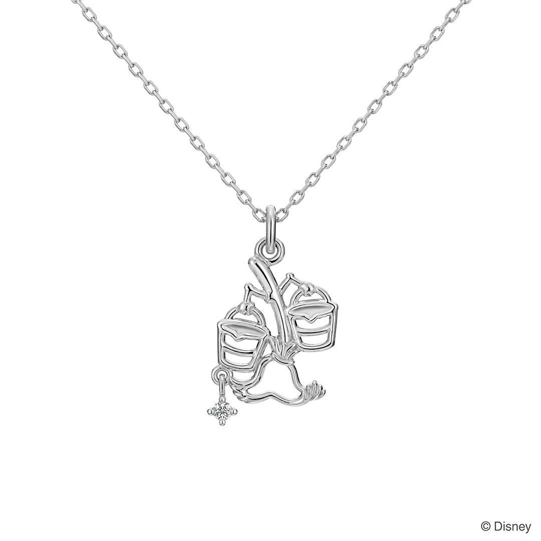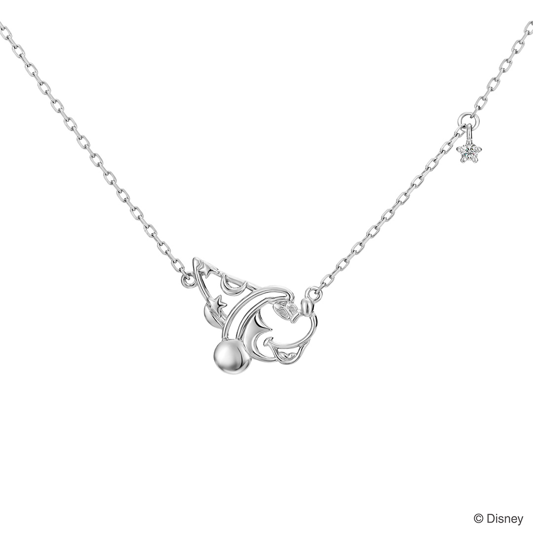 魔法使いの弟子「ミッキーマウス」の姿を、透かしの作りで細部まで表現したネックレス。