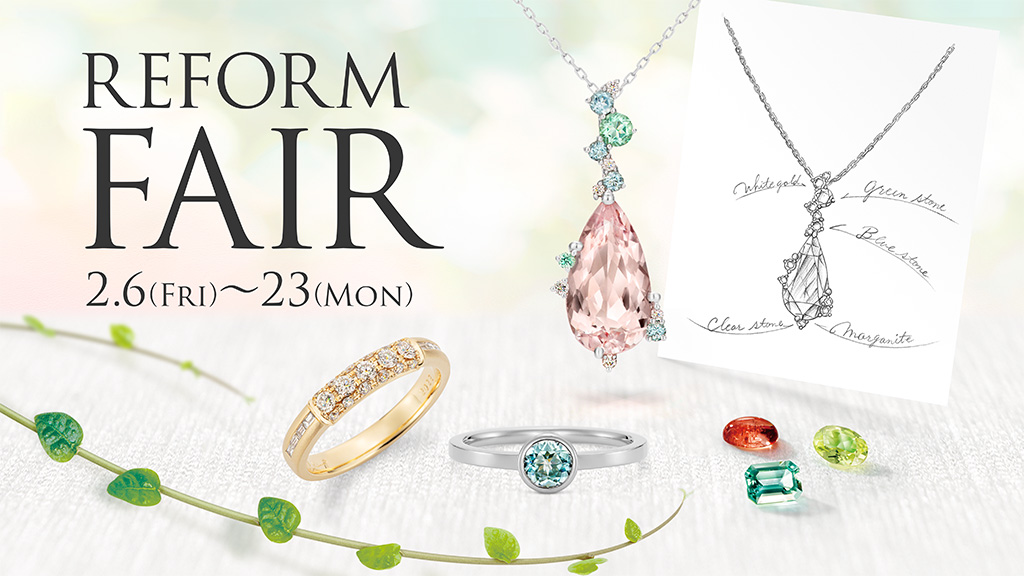 フェア期間中にご来店いただくと、お持ちのジュエリーのお磨き直しが無料に。その他にも、フェア期間限定の特典をご用意してお待ちしております。