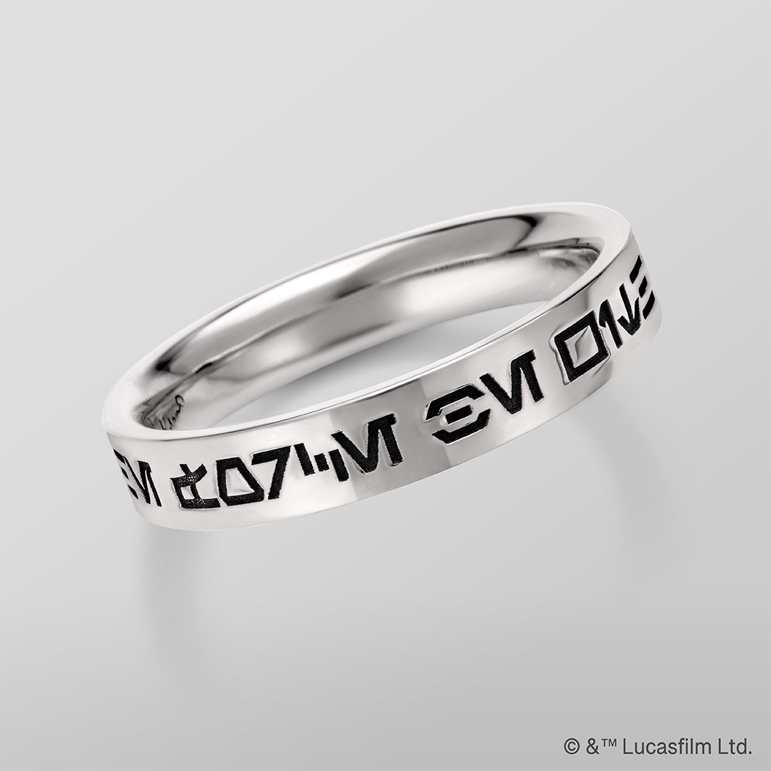 劇中で使用される文字「オーラベッシュ」で、「フォースと共にあらんことを」と刻んだリングも販売。