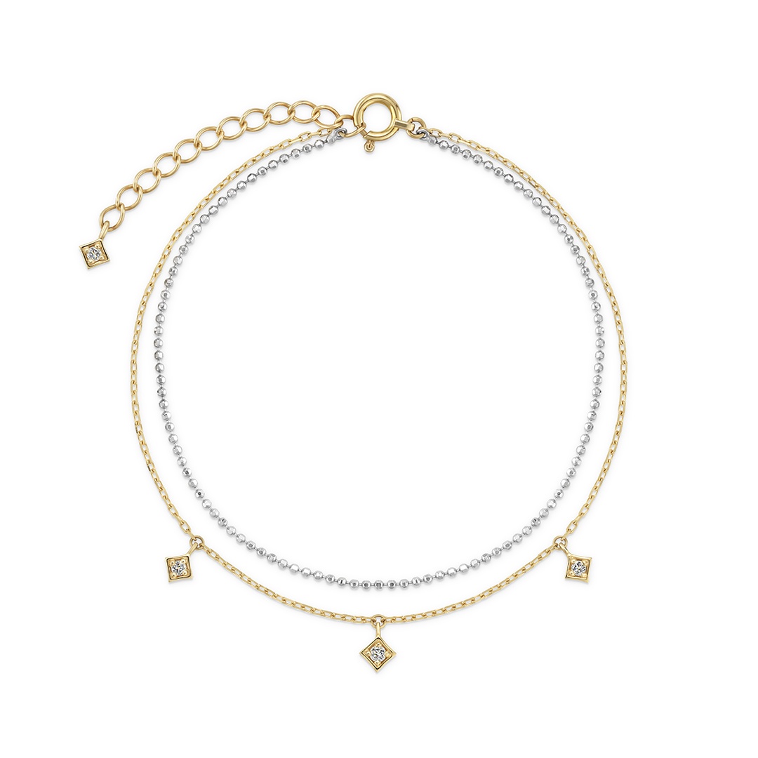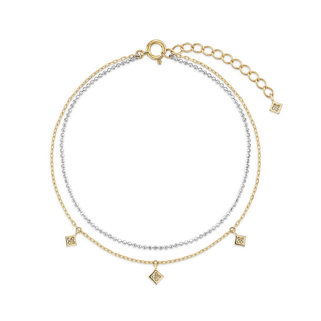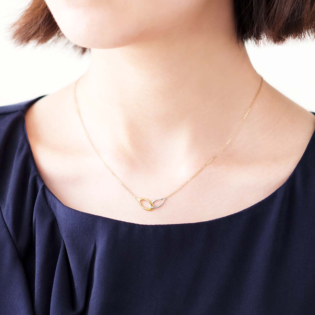 《セット内容》Il nesso イル ネッソ(型番:NS-610)「Twinkle(double)」~Gift from Fairies~ トゥインクル(ダブル) /幸せの粉(型番:BrE-101)2種類の金属を使用したネックレスとブレスレットのセット。ネックレスは、チェーンモチーフのデザイン。異なる色の輪が繋がるデザインは、互いを尊重し合いながら強く結ばれた固い絆をイメージしています。強く結ばれた心の繋がりをカタチにして。ブレスレットはイエローゴールドとホワイトゴールドのチェーンを組み合わせた存在感のあるデザインです。メレダイヤモンドを留めたダイヤ型のモチーフがアクセントとなり、手元が動くたびに揺れ繊細な輝きを放ちます。
