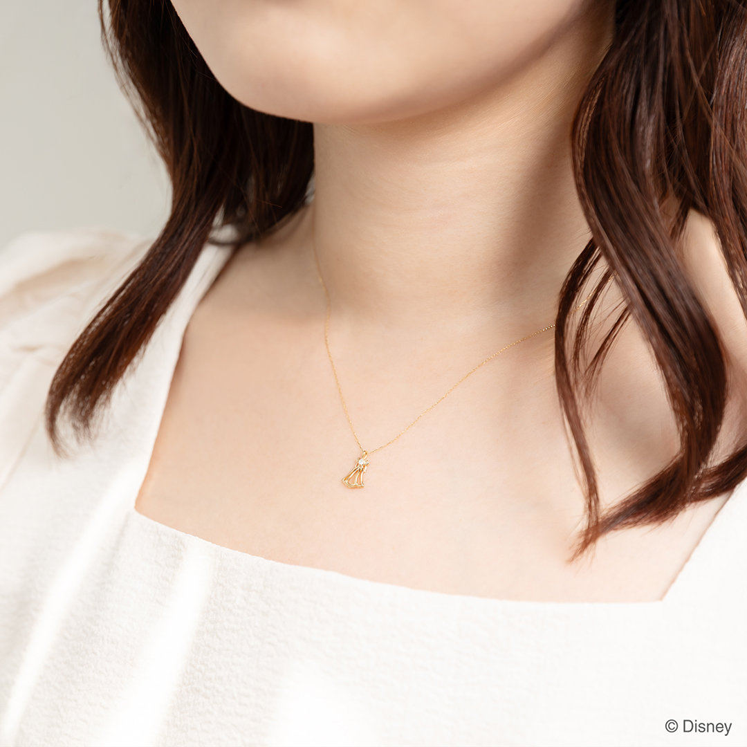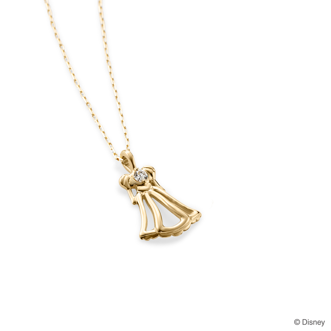ドレスをまとう瞬間、世界がきらめく 「シンデレラ」「ティアナ」「オーロラ」「ベル」「アリエル」「ラプンツェル」それぞれのドレスがクローゼットにかかっているようなイメージの『Dress me』シリーズ。 「ラプンツェル」のデザインは、作中で軽やかに身にまとっているパープルのドレスをモチーフに。パフスリーブのストライプ模様まで忠実に表現しています。 横から見た時にもわずかにアールのついた立体感で、ドレスのふんわりした質感を大切に製作しました。K18イエローゴールドを使用しメレダイヤモンドが輝くネックレスは、上質な素材で永くご愛用いただけます。ホリデーシーズンのギフトをはじめ、ご自身へのご褒美にも最適なアイテムです。