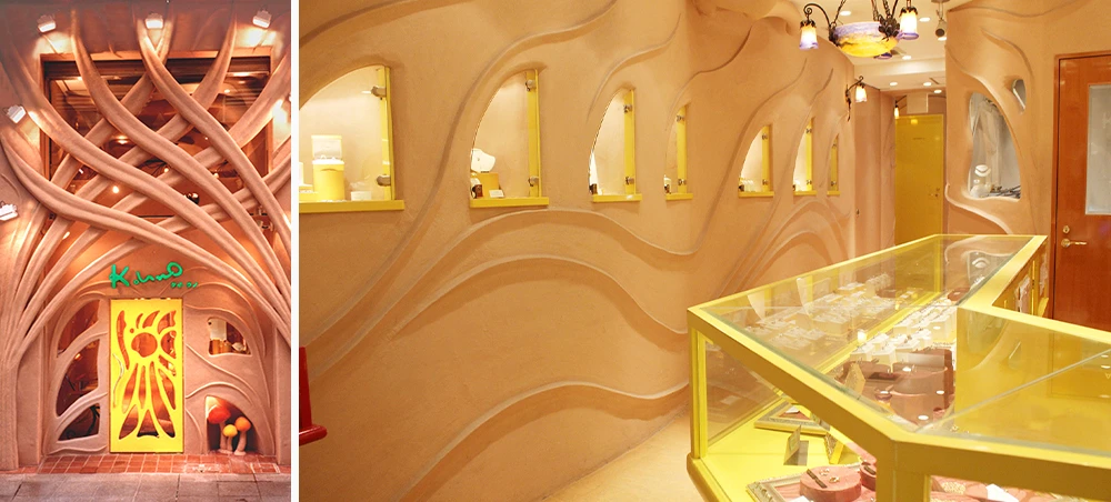 アンティークランプの光が柔らかい雰囲気をつくり、植物好きの職人により手入れされた緑がたくさん置かれている店内には、結婚指輪や婚約指輪などのブライダルリングからファッションジュエリーまでジュエリーを豊富に取り揃えております。