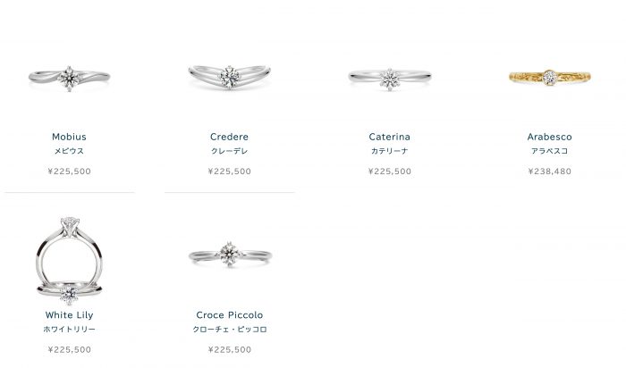 以下は、ディズニーのマーク刻印を入れても25万円台から購入できるリングです。(一部抜粋)